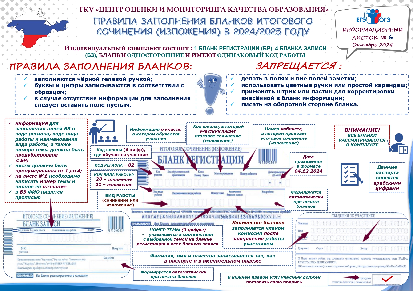 Правила заполнения бланков итогового сочинения (изложения) в 2023/24 учебном году