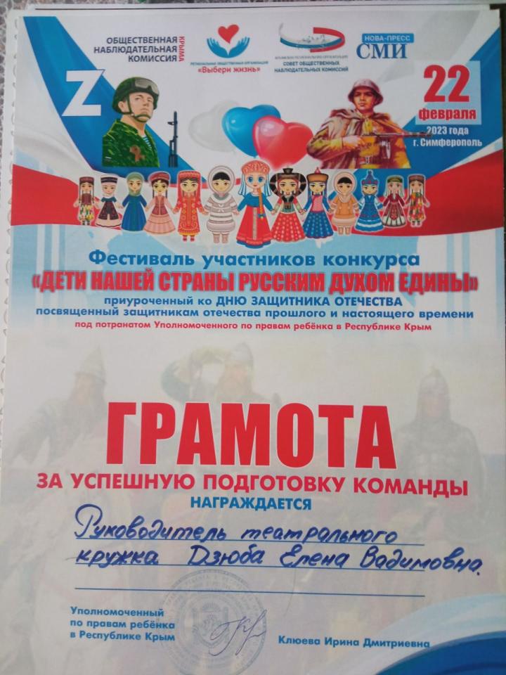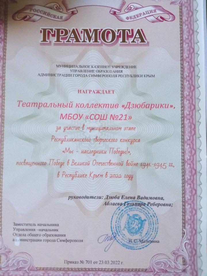 Приказ о создании школьного театра "Дзюбарики"