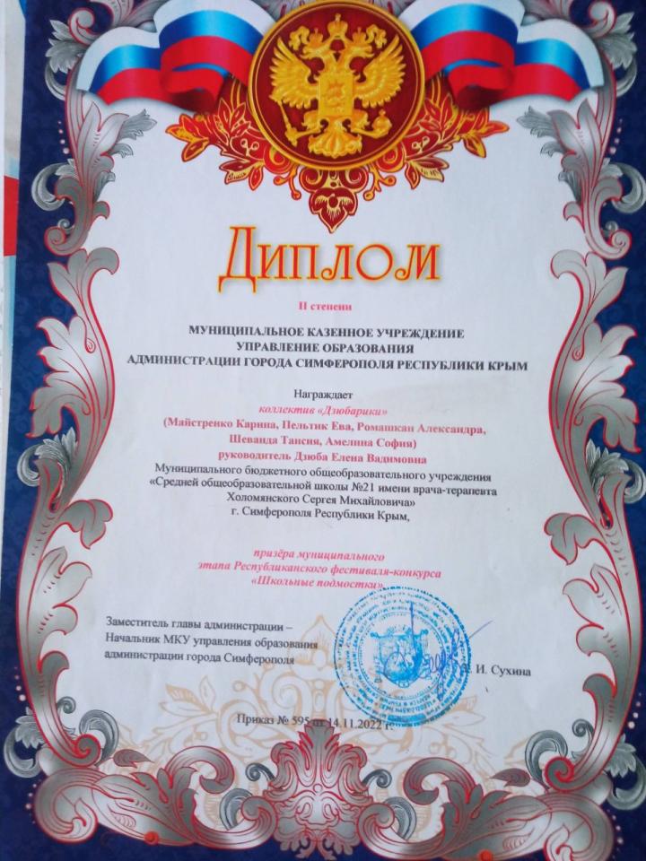 Муниципальное бюджетное учреждение «Средняя общеобразовательная школа № 21 имени врача-терапевта Холомянского Сергея Михайловича» муниципального образования городской округ Симферополь Республики Крым